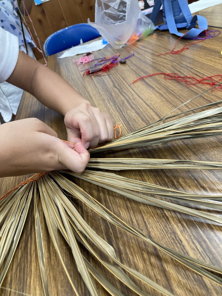 学童で、蠅叩き作り☆2024年8月23日 in その他 シュロを使って、蠅叩き作りをしました。刺繍糸を使って、可愛い蠅叩き出来ましたぁ🎵 細かい作業でしたが、子どもたちは集中して最後まで頑張って作りましたー!