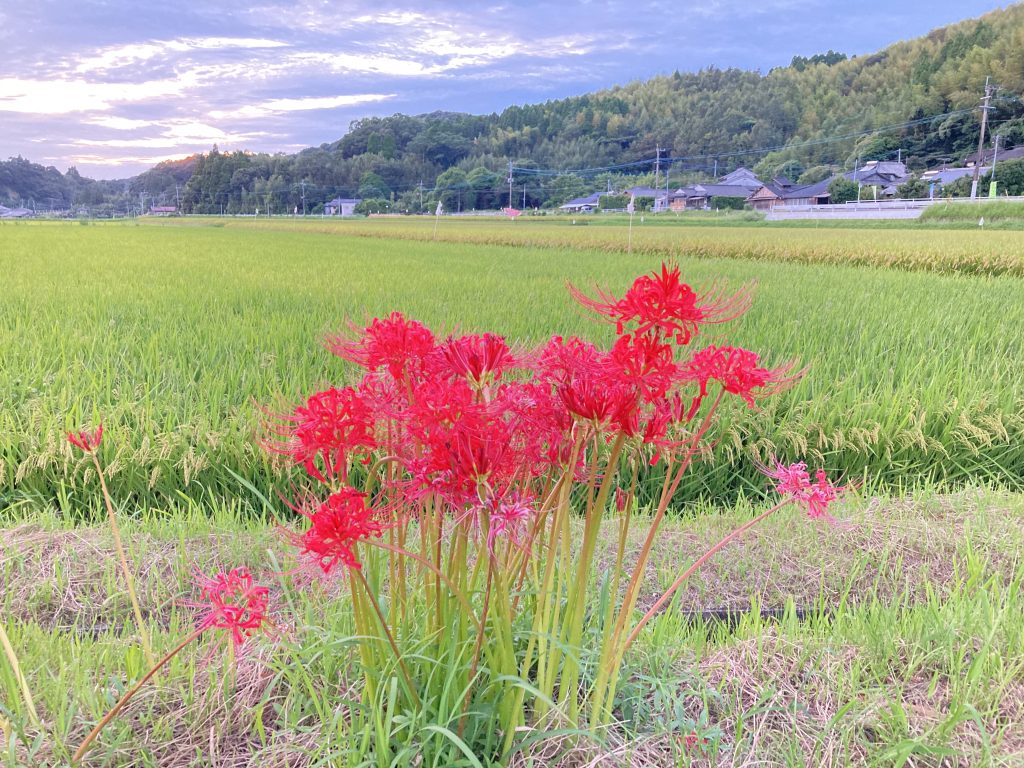 彼岸花が咲き始めました!2023年9月25日 in その他 秋めいてきた和田地区。今年も、彼岸花がきれいに咲き、稲穂と青空と彼岸花。。。最高の秋の景色を魅せてくれています。 いろいろな行事で慌しい中、ほっとさせてくれるこの情景。いつまでも大切にしたいなぁと思うことです。